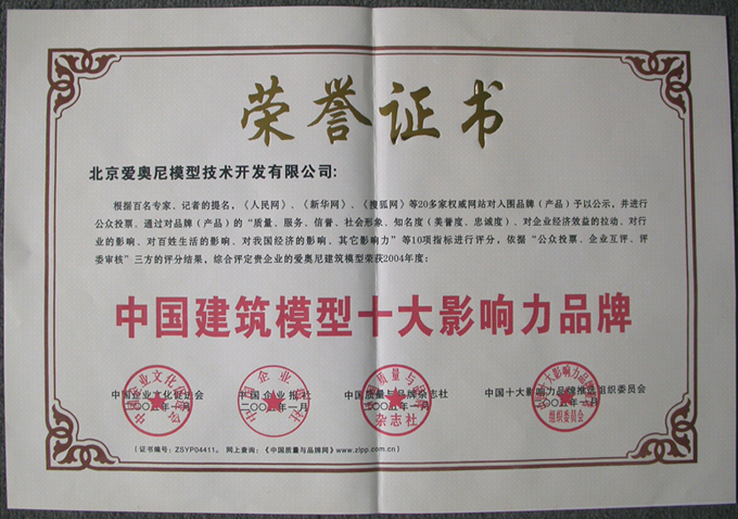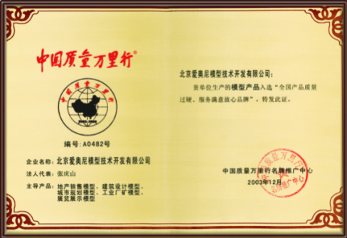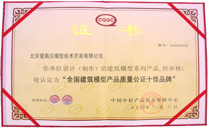 全國(guó)建筑模型產(chǎn)品質(zhì)量公證十佳品牌