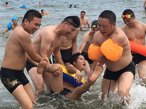 安排完住宿后我們來到了海邊浴場,大家奔跑著、追趕著、陽光浴、沙灘浴,感受到了大海的磅礴和海水的咸澀。