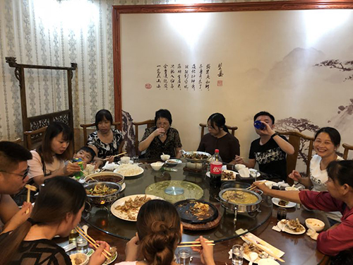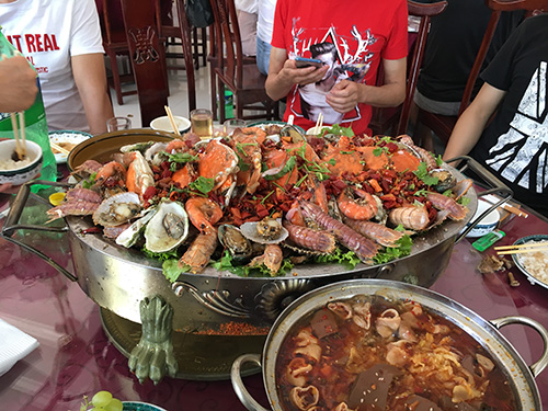 晚宴更是豐富,螃蟹、皮皮蝦、海螺、蟶子,應(yīng)有盡有。大家盡情暢飲,舉杯同慶。