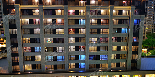 建筑窗戶使用半透明有機(jī)玻璃激光雕刻,不僅可以展現(xiàn)出細(xì)致的凹凸窗線和玻璃質(zhì)感,還可以看到里面的窗簾等裝飾。